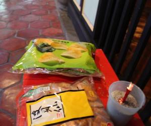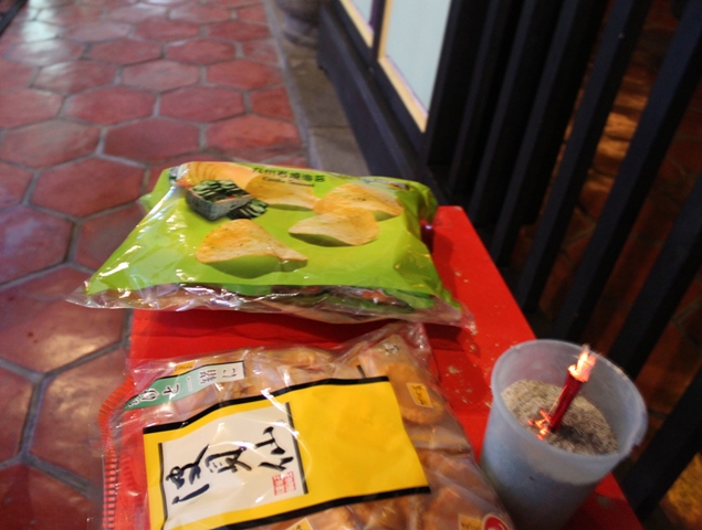 演出开始前,他们还在大成殿前上了香,摆了薯片等食品作为供奉,祷告先师助阵演出成功。
