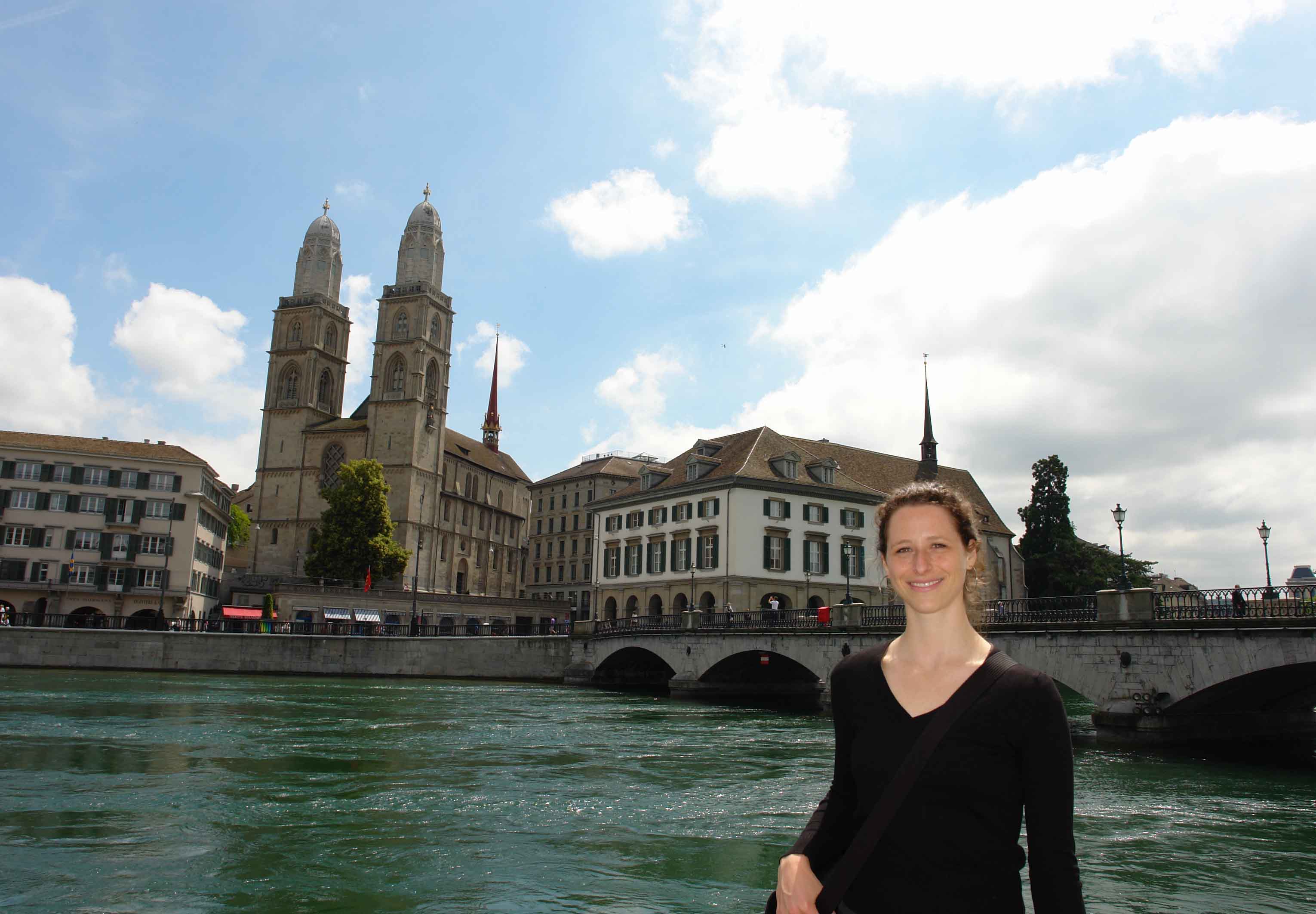 蕾娜(左一)与导师傅玛瑞(中)等合影 在利马河畔留影 为意大利美味加奶酪