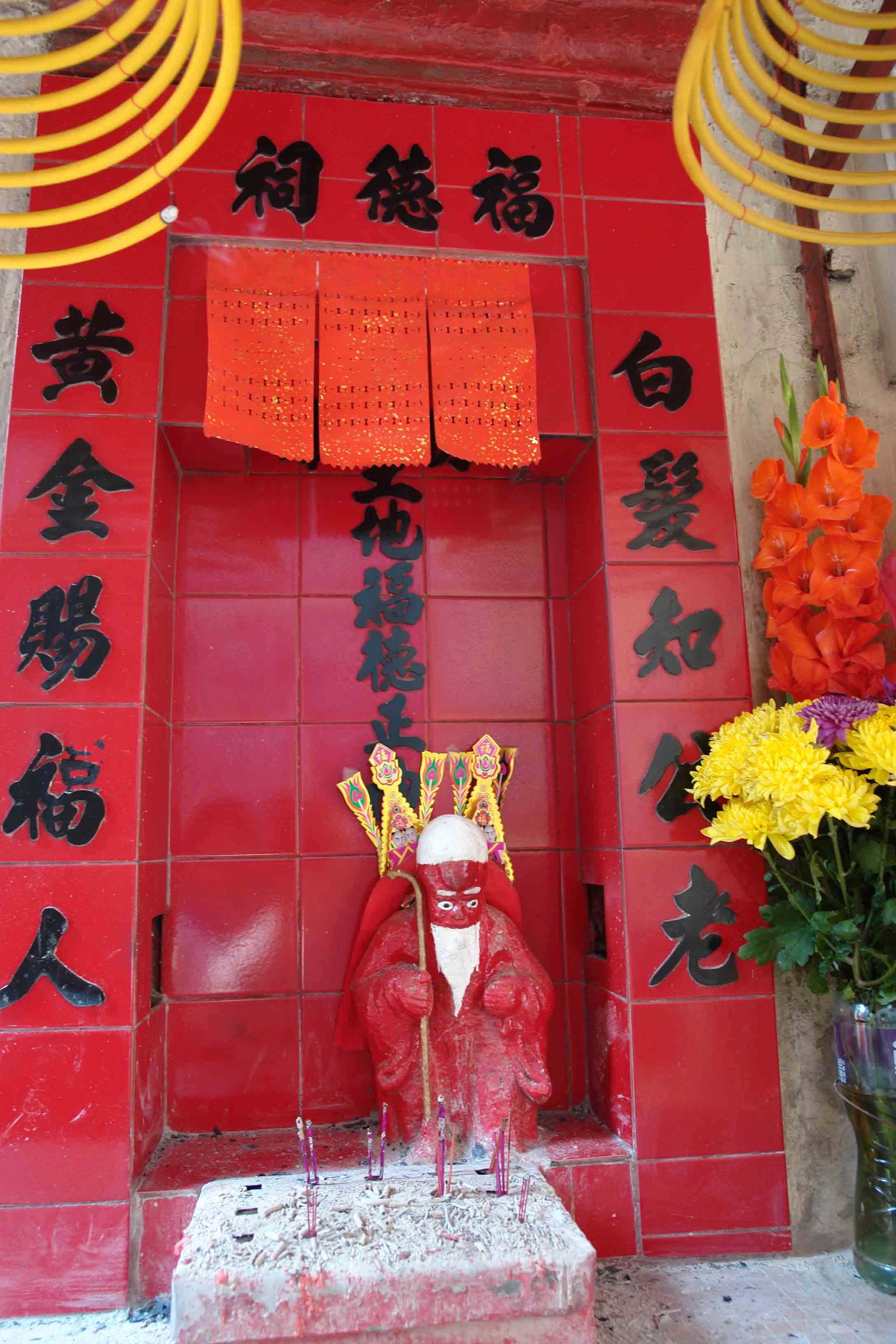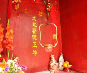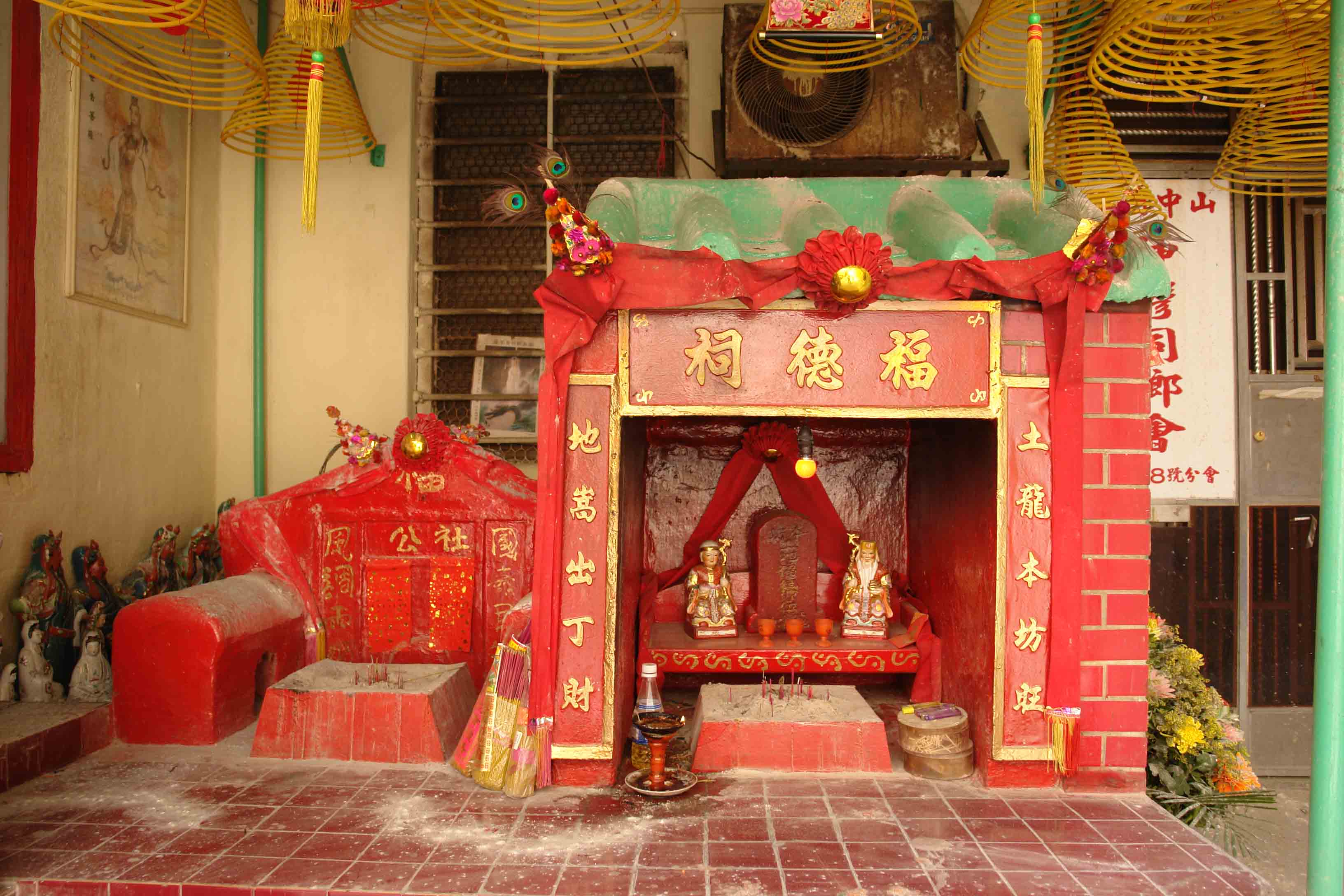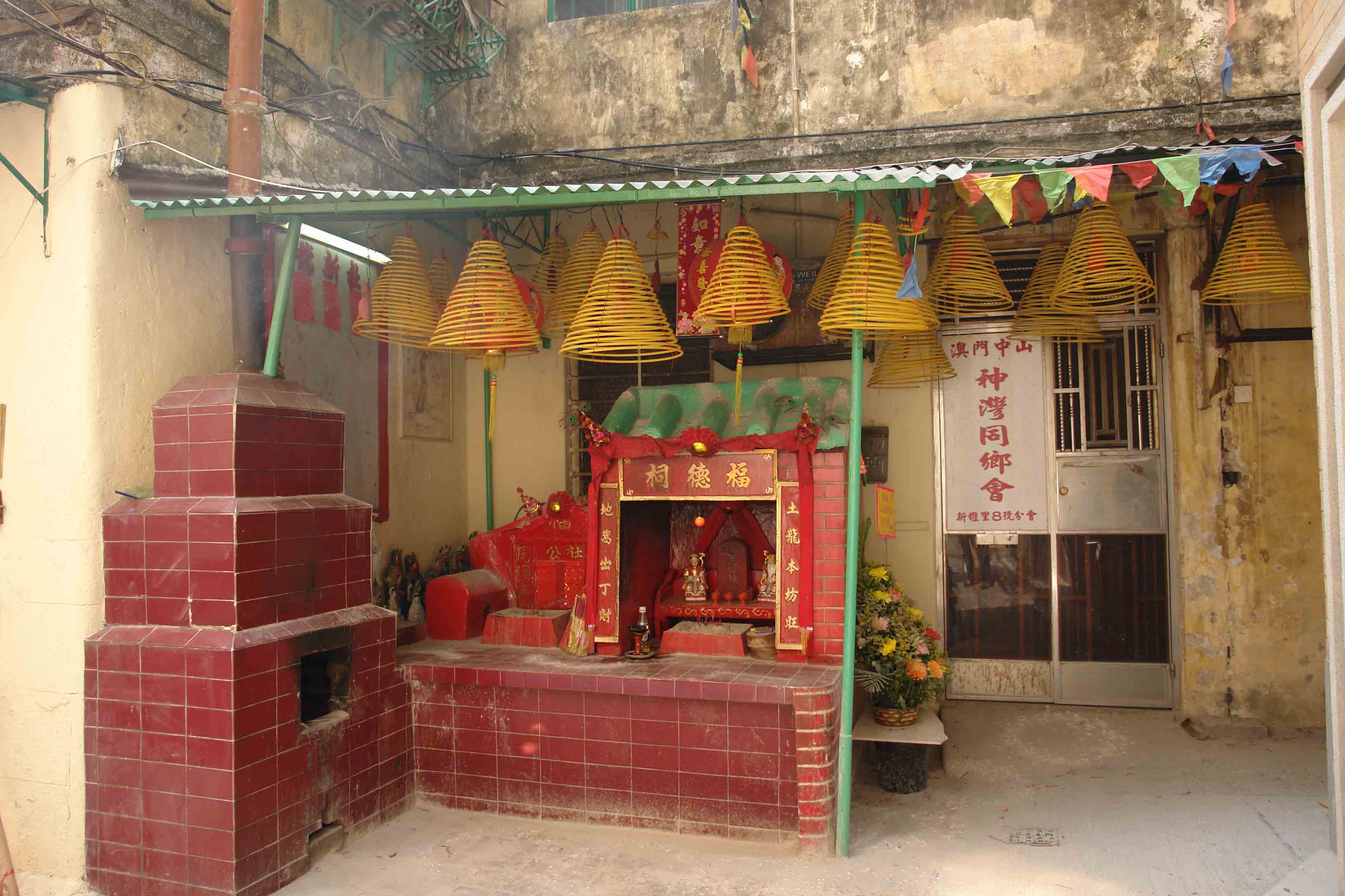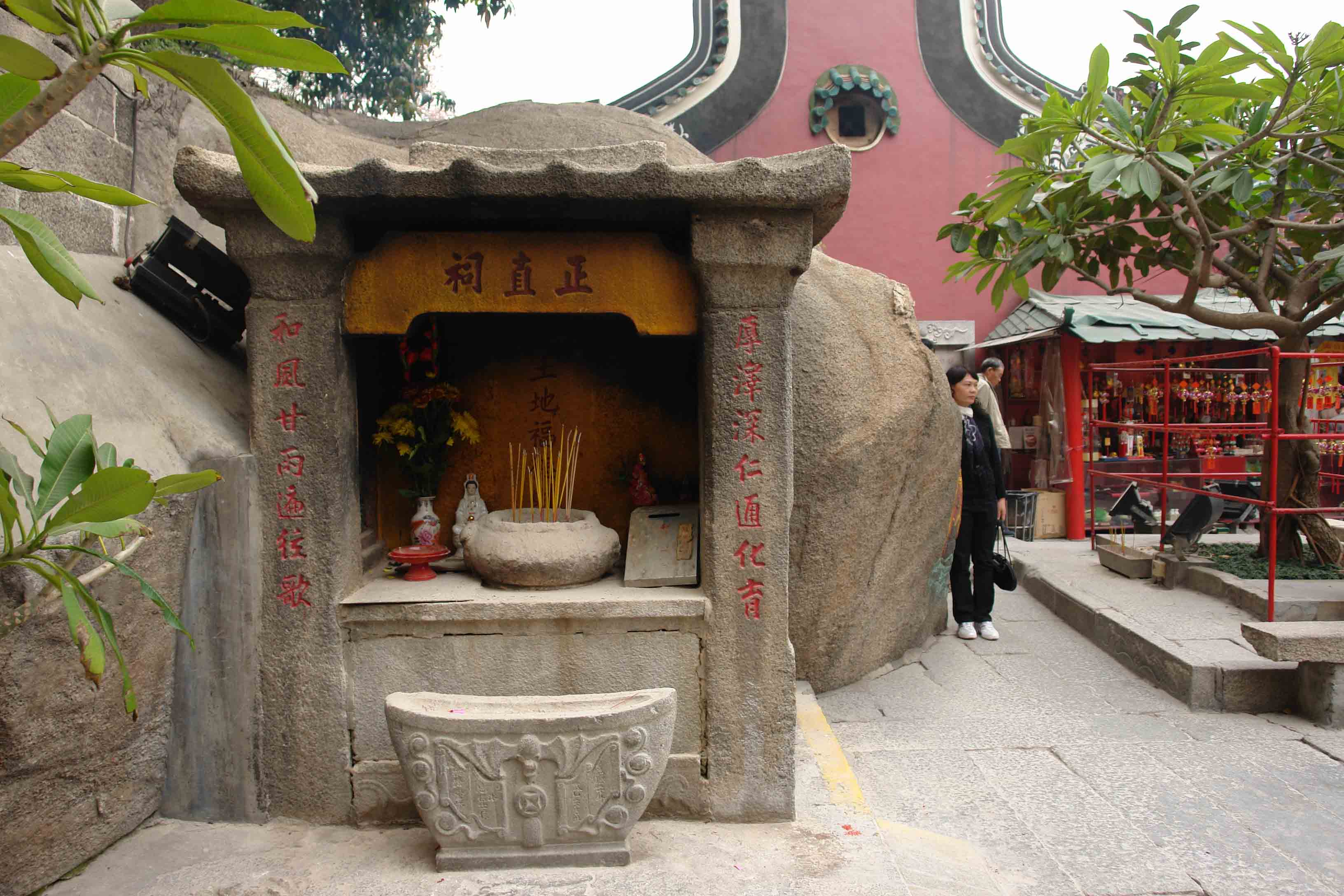 在澳门著名的妈阁庙中,便有三处土地庙或土地牌位。其中两处有庙,均称作“正直祠”,一处写的是“土地福德财神”,另一处写的是“土地福德正神”。另有一块大约40厘米高的石碑,上书“土地神位”。在岗顶斜街的菖蒲里和聚龙里都有土地神庙,菖蒲里神位上写着“本坊土地福德正神”,聚龙里土地庙上书“福德祠”,神位上写的也是“本坊土地福德正神”。在奥斯定教堂旁的龙嵩正街,有龙新社的土地庙,街口扎有彩花门楼,龙新社的土地庙上书“福德祠”,是与社公一起祭祀的,土地庙旁的人家大门上方还写有“龙新社坊众土地会”。位于大三巴牌坊边上的哪吒庙,也有自己的土地庙,瓷塑的神像上刻有“地主爷神位”的字样。