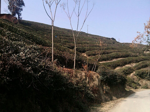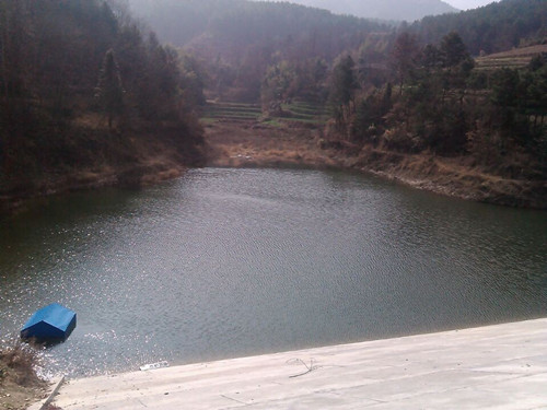 初三,出县城西行十余里,十余人至魁里楼,南走,过清凉小学,沿桃花沟溪水行、小沟曲折,溪水时隐时现,天旱少雨之故。沟边多 井盖,水泥石板覆之、细管引水注入旁侧居户。草深,路狭,树稀,屋少(多迁于汉白公路、305省道边)。一坡宽,两侧梯引而上,绿松石为栏,一汪碧水盘于谷内——松树沟水库。山坡多植茶,树茂繁, 这也是石油公司前些年,与松树沟村联营缘故,遂有石松茶场,村书记黄光耀弃众人趋之若骛茶场场长不顾----时人谓油水丰厚的职位,仍任清贫书记,直至今日不悔。