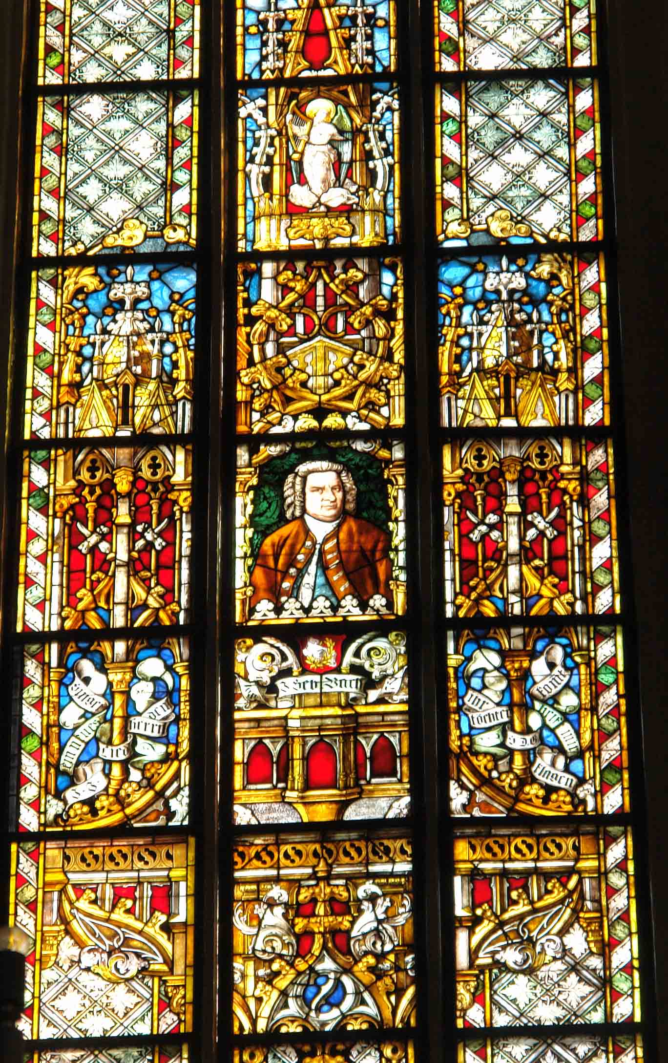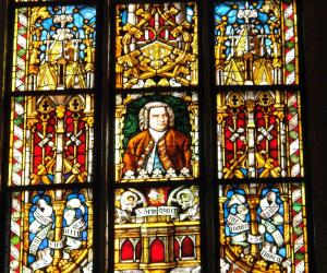 托马斯教堂彩绘玻璃上的巴赫像