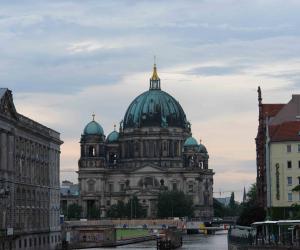 7月12日是星期日,上午我们去柏林大教堂参加了一次完整的礼拜仪式。柏林大教堂在二战后期也遭到了轰炸,战后的修复工程一直持续了将近40年,直到1993年教堂才重新开放。柏林大教堂于1894至1905年间修建,整体建筑属于意大利文艺复兴风格。教堂正殿的顶部冠以显著的高达85米的穹顶,从外部看去更是十分耀眼。教堂内部的装饰威严而堂皇,宏伟壮观的布道坛是新巴洛克风格,教堂内的索尔风琴(Sauer organ)是德国最大的管风琴之一。