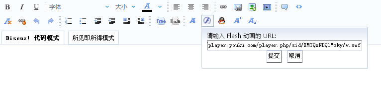 ①在论坛发帖或是回帖的编辑窗口中选用【Discuz!代码模式】