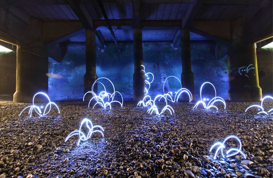光电涂鸦作品-在桥墩下