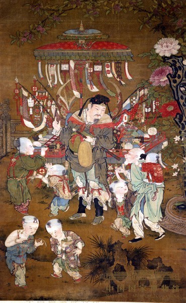 以货郎为画题的民俗画在宋代以后十分流行。宋代的李嵩、苏汉臣,明代的吕文英、计盛,清代的罗聘、张赐宁等画家,均有《货郎图》传世。这幅《货郎图》,作者不详,是著名历史学家侯外庐先生捐献给中国历史博物馆(现国家博物馆)的。