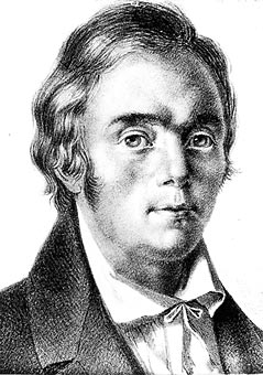 Elias Lönnrot at the age of 39, six years after the publication of the Kalevala (1835), when he was District Physician in Kajaani. Lithography by J. Knutson in the Folklore Archives of the Finnish Literature Society, Helsinki.