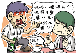 而不同地域的喝酒者,饮酒风格往往大相径庭:东北人大碗大碗地喝,图个爽气;南方人小口小口地抿,讲个秀气;山东人杯杯喝得干净,显得朴实;河南人将小酒盏一摆一大排,求个排场;而西北人吆五喝六划拳行令,图的是个热闹。