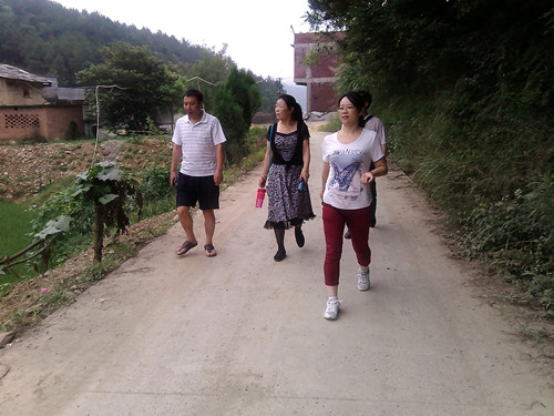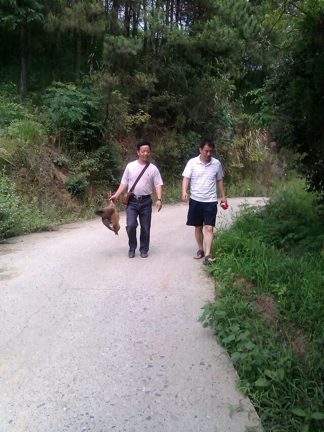 七月六日、早八时,竹溪百味群(84134126)一行六人,到纪家山玩。出县城东行,过隘口,一眼见得平坦,过十余里地,有山伏于东,这就是纪家山。山路蜿蜒,林密树深,茅屋零星散布,时有背负旧式农具之乡野村人 ,豁然而过。太阳早起,直直地射下,愈发显得路边楼房瓷砖白墙壁热 ,钻林侧入小路,泥土为基,凉风阵阵。一怀抱湾展现眼前,如一眼细泉流过,竹林绕于后,桂树布于前,中为一排旧式泥胚砖房。进农户,喝山茶,品山果,见土鸡一群悠然从眼前走过,遂立意购回数只。汗收热净,走上回程路。