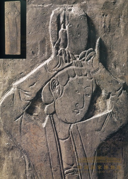束发雕砖表现了一名妇女束发的场景,她上身穿窄袖对襟旋袄,露出格子纹抹胸,下身穿长裙,一侧系有佩饰,是当时北宋妇女的典型装扮式样。她侧身而立,正在结发戴冠,这种冠是当时北宋上层妇女流行戴的一种高冠子。整个画面比例适中,人物姿态俊俏,生动传神。