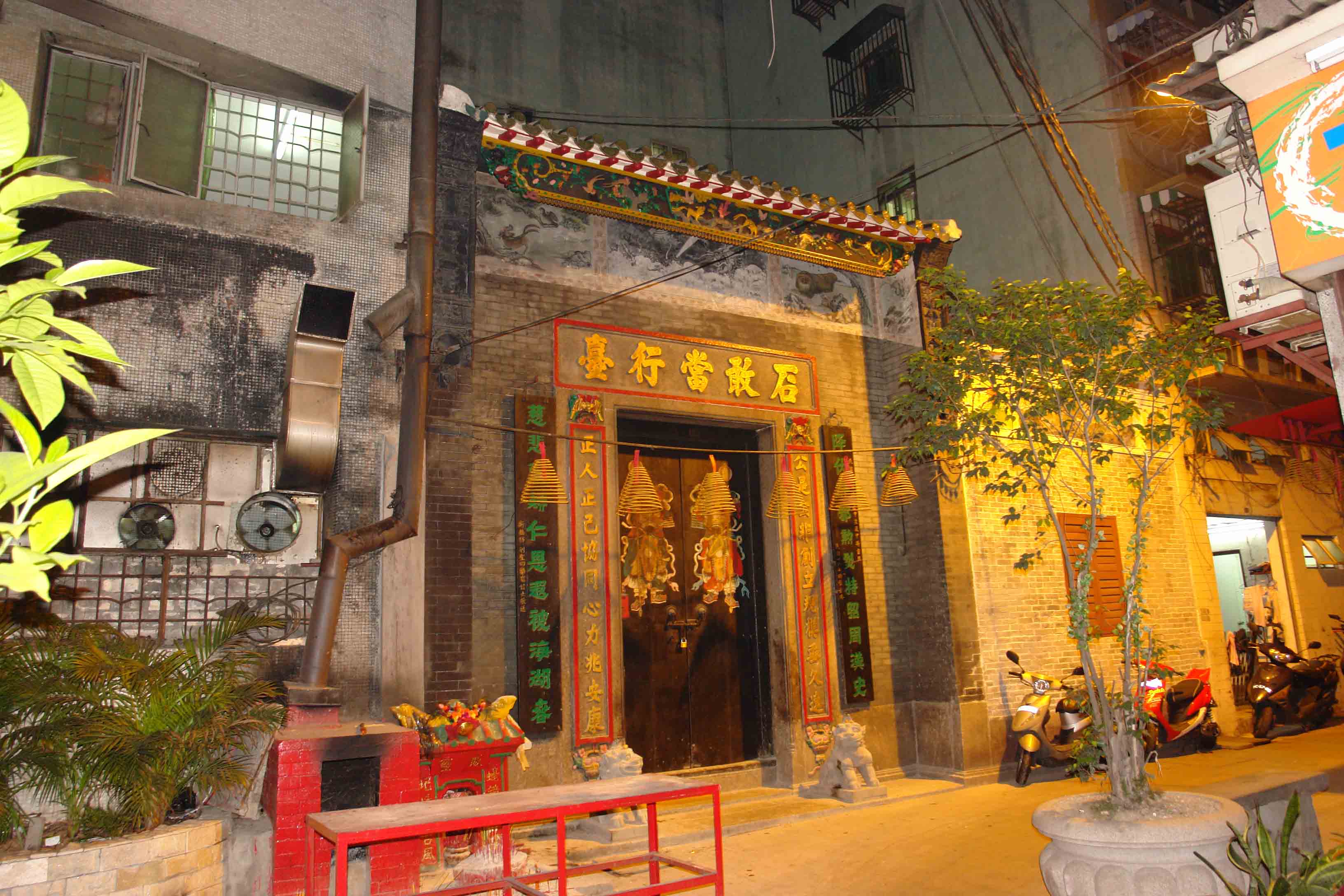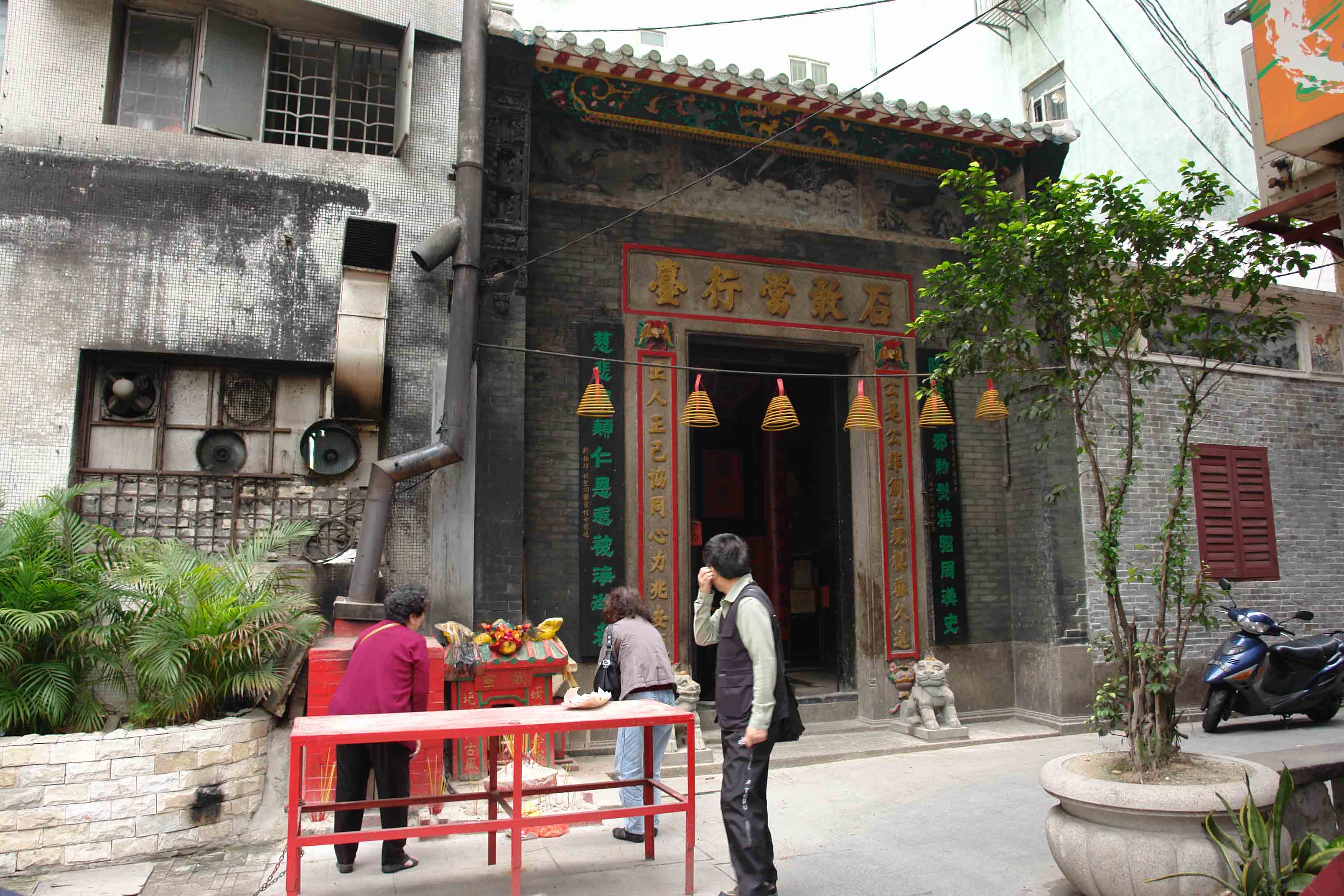 前天(3月17日,初一),傍晚从大三巴牌坊徒步前往沙梨头土地庙,途中发现一座门楣写有“石敢当行台”的庙宇,当时庙门紧闭,没有来得及询问。