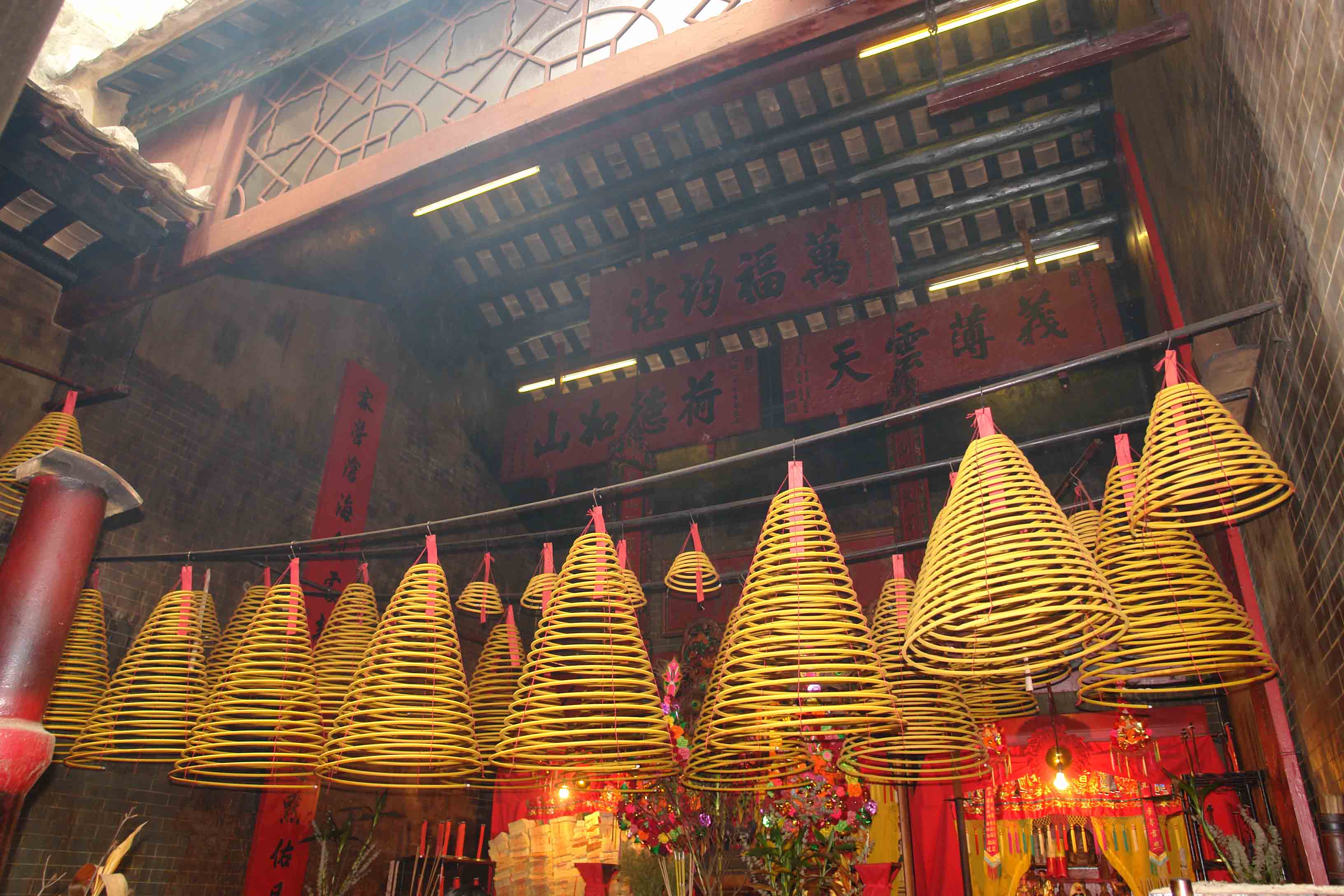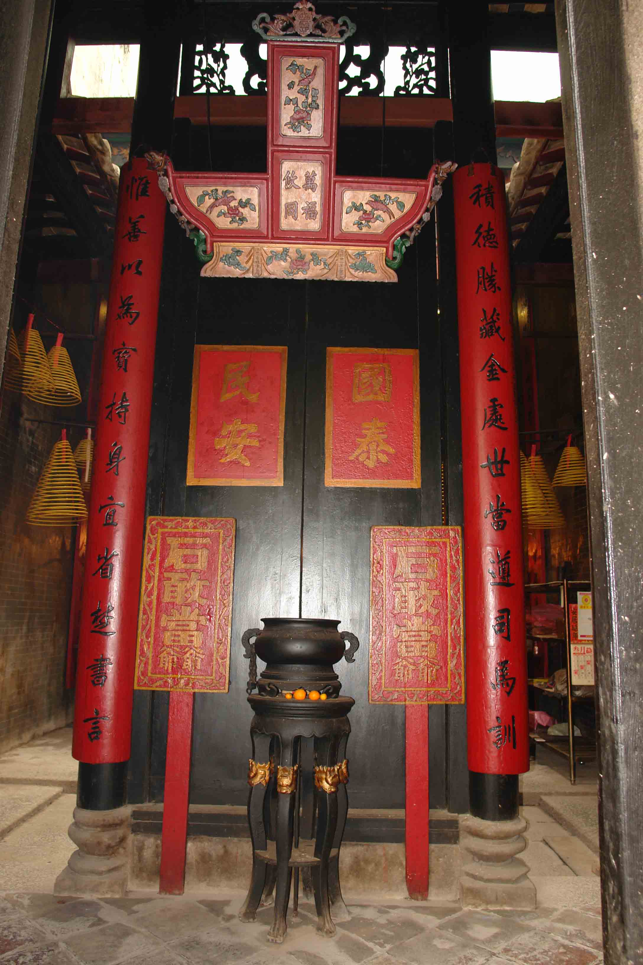 这座“石敢当行台”,又称“石敢当庙”,是在原来祭拜的一块“泰山石敢当”的基础上,于清朝光绪二十年建成的一座庙宇。该庙占地600多平方英尺,屋高6米。庙主梁小姐介绍说,全亚洲只有两座石敢当庙,这里有一座,还有一座在济南,在玉皇顶上(原话如此)。梁小姐没有去过山东,也弄不清济南和泰山的方位。