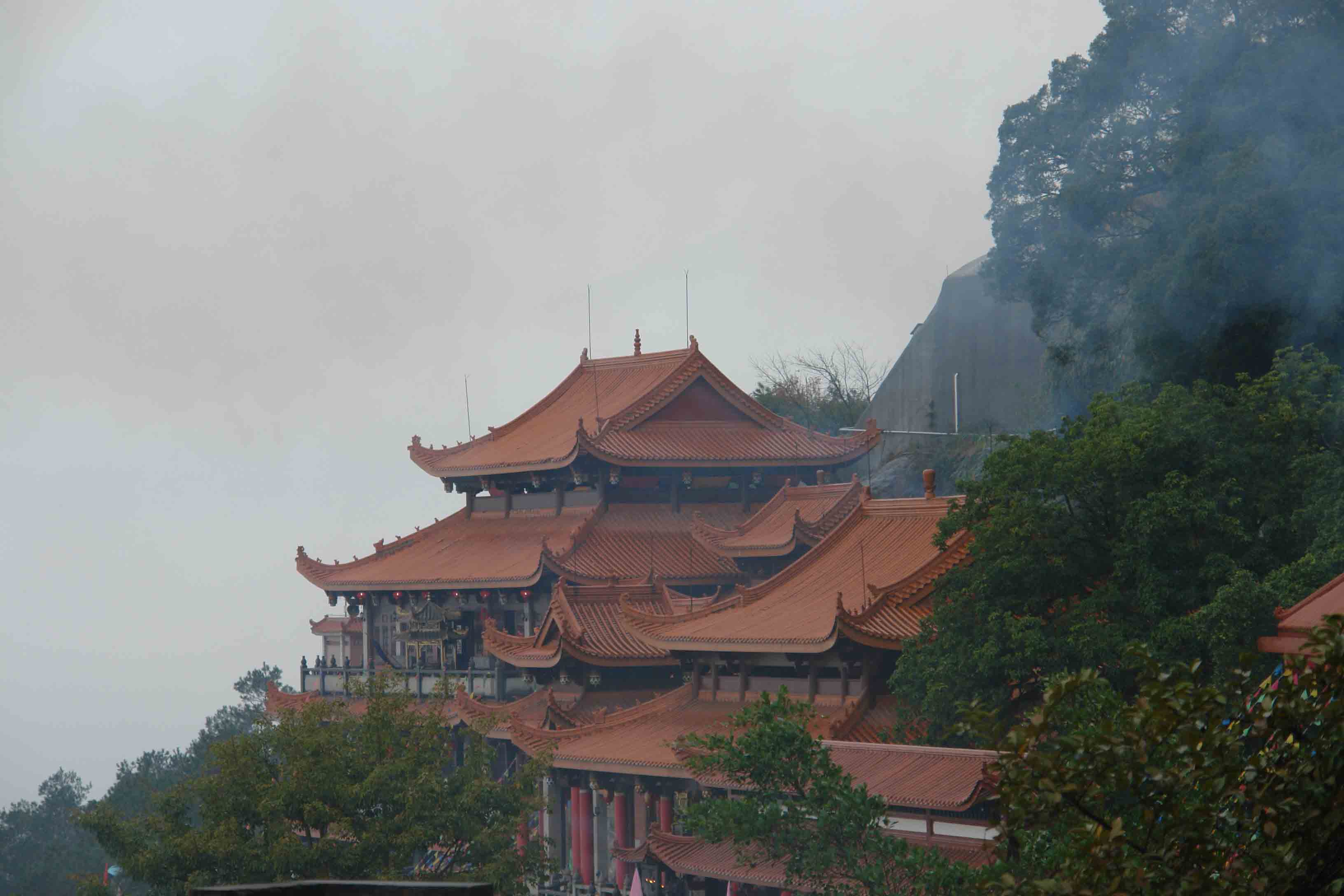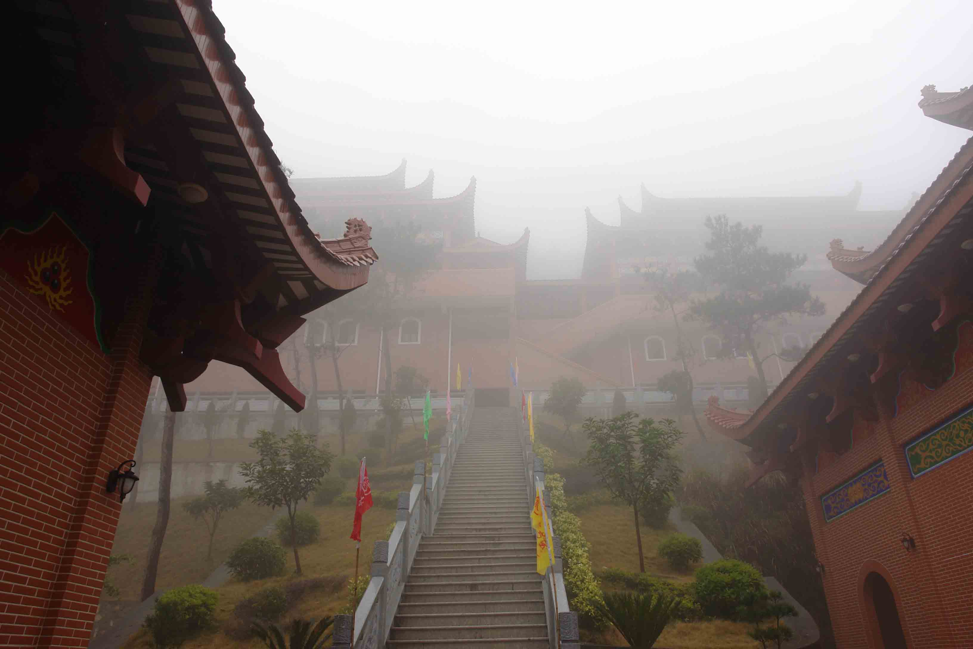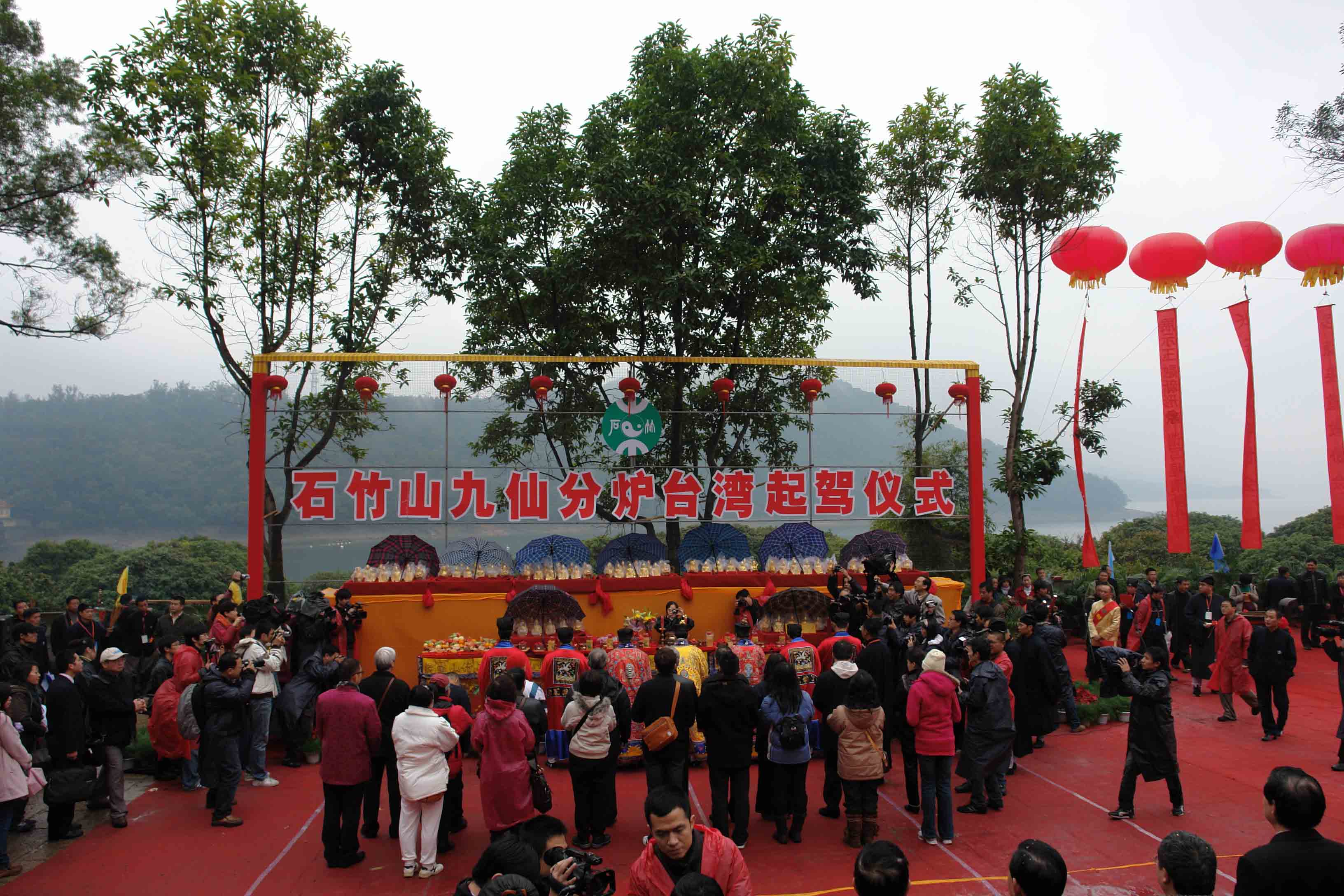 1月2日上午文化节开幕式,天公作美,雨雾朦胧,漫步石竹山似在梦境之中。按照在大会上讲话的台湾一位道教领导人的说法,雨代表财气,雾自然是仙气。开幕式程序中,各界领导讲话多多,从石竹山道院住持到国家道协会长,从福清市、福州市、福建省各级地方官员到国家宗教局领导,尤其是台湾道教界来宾不少,都不能遗漏:台湾道教总会、台湾中华道教总会、台湾省道教会等。这次两岸道教圆梦之旅,福清开幕,基隆闭幕,所以在活动的上级指导单位中,台湾内部部门、基隆市政府、基隆市议会也列名其中。开幕式的最后一个程序,是请逐级领导上台列队见证,福清市有关部门与投资商现场签订投资合同。