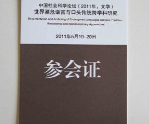 这两天受邀听会:“世界濒危语言与口头传统跨学科研究”国际学术研讨会。这是社科院主办的“中国社会科学论坛(2011,文学)”专场,由民族文学研究所承办。