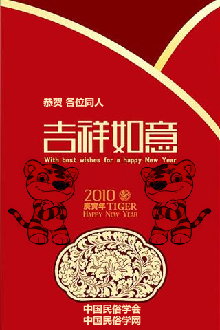 在2010年春节到来之际,我们代表中国民俗学会和中国民俗学网向全国民俗学界广大同仁致以节日祝贺,祝大家新春愉快,虎年大吉!