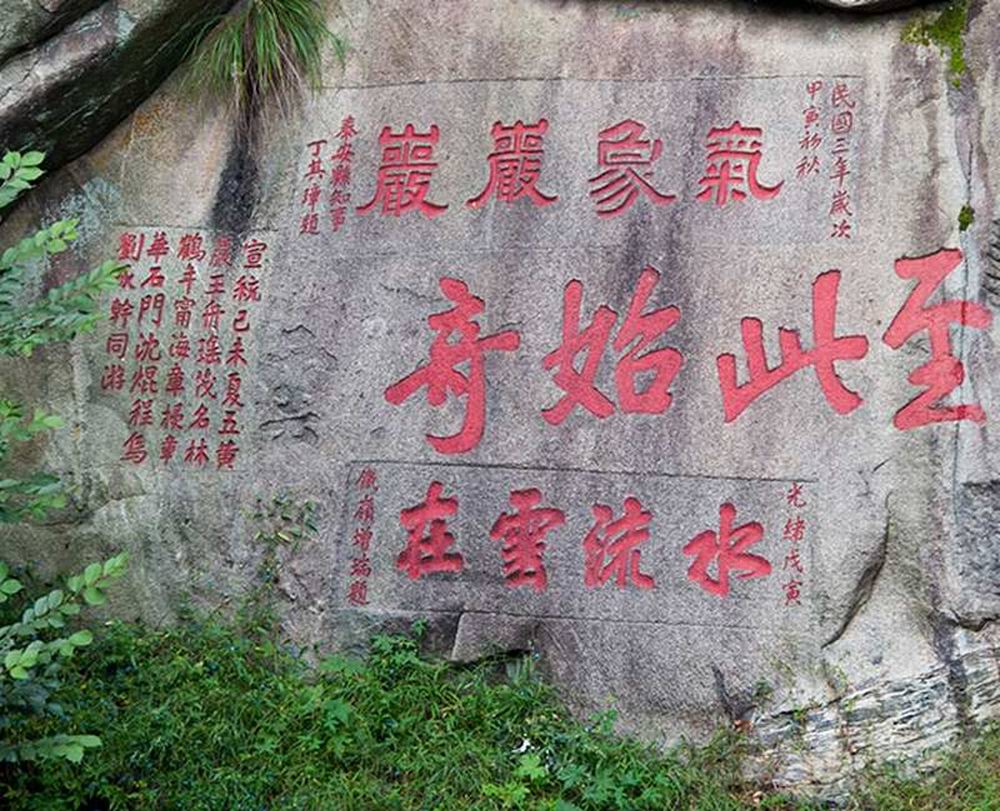 1919年6月2日,王舟瑶(1858~1925)等人在云步桥旁刻石,云:“宣统己未来夏五,黄岩王舟瑶、茂名林鹤年、宁海章梫、章华、石门沈焜、程乌刘承幹同游。”奉行清帝宣统年号。
