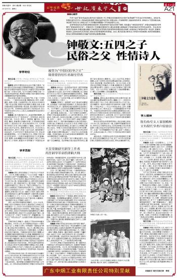 会上,钟敬文先生孙子钟炎,中国民俗学会顾问、中山大学教授叶春生,中山大学副校长、广东省民间文艺家协会主席陈春声教授,北京师范大学文学院教授、国务院学位委员会学科评议组成员董晓萍,中国民俗学会会长、中国社会科学院民族文学研究所所长朝戈金教授满怀崇敬而激动的心情分别作了发言,颂扬钟敬文先生严谨的治学精神和高尚的人格风范。